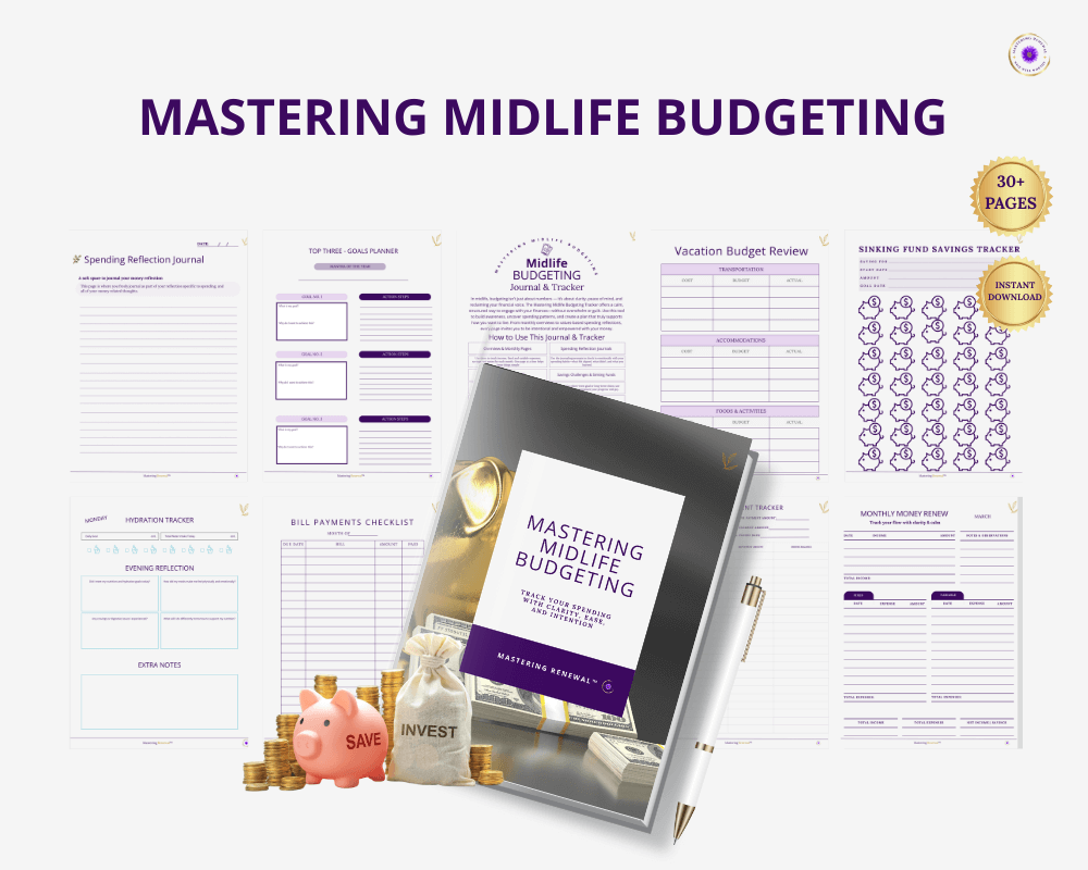 📒 Mastering Midlife Budgeting Tracker – A calm, structured approach to taking control of your money — without overwhelm, guilt, or perfectionism.