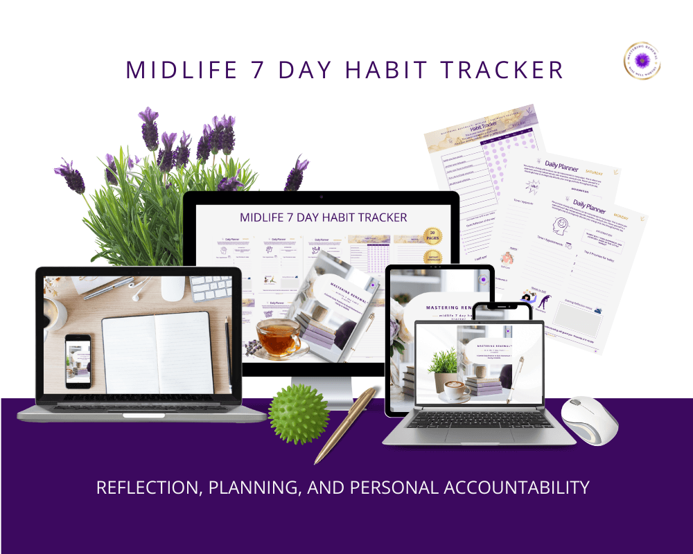 The Midlife Renewal Starter Kit was thoughtfully created for women navigating hormonal shifts, identity changes, and life transitions with too much on their plate and not enough time to just breathe.
